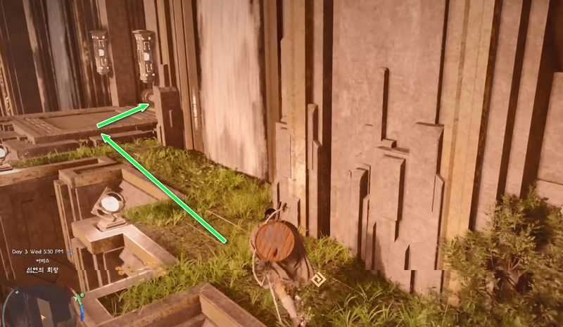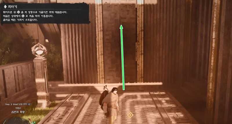 그후 안쪽으로 이동해, 우측을 보면 벽이 보이므로, 벽타기로 위로 올라갑니다.