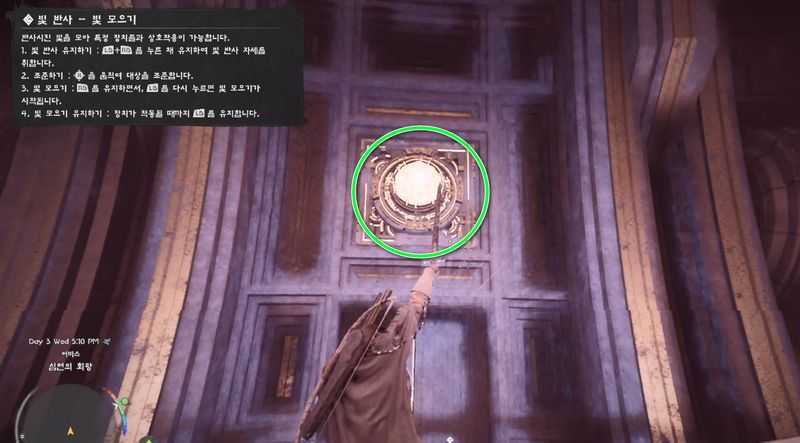 XBOX 기준으로는 LB+RB를 누른 상태를 유지하여 빛 반사 자세를 한 뒤, RB는 계속 누르고 있고, LB버튼만 뗐다 눌렀다 반복해주면 빛 모으기를 할 수 있습니다.