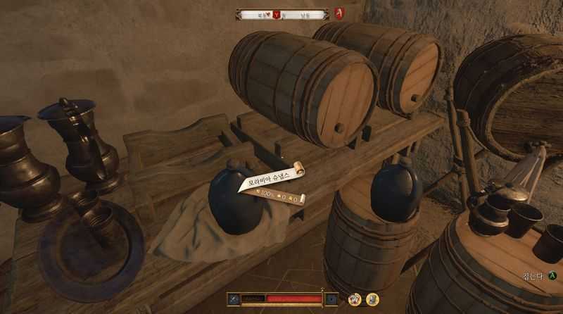 그후 맞은편 문을 열고 들어가 통 근처에 있는 ‘모라비아 슈냅스‘를 획득합니다.