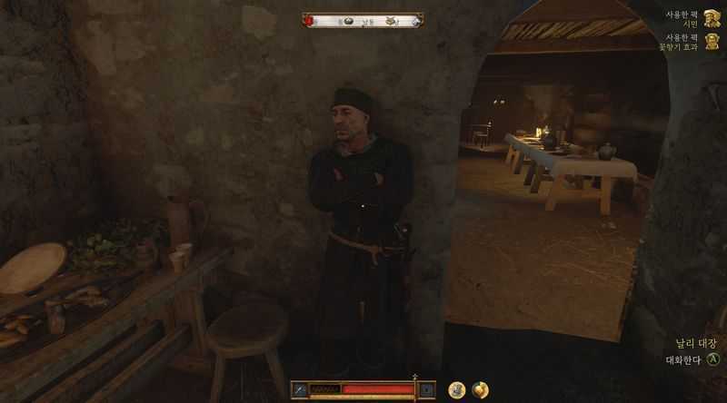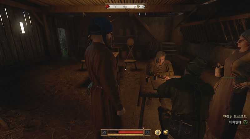 헛간으로 이동해 주사위 테이블 근처로 가면 사냥터지기 보스타텍이 또 술을 마시려고 할 것입니다.