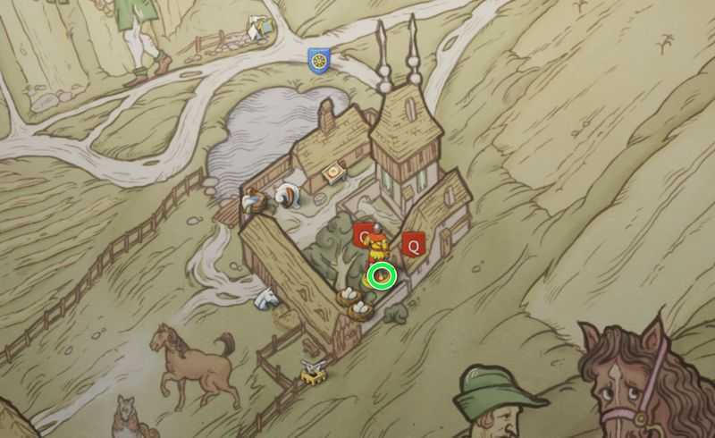헛간의 주사위 테이블 뒤쪽 계단을 올라가, 헛간 2층으로 가서 한스 케이폰 경가 대화합니다.