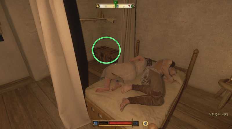 그후 우측 문을 열고 계단을 올라 2층으로 가면, 여관 주인 베티와 남편이 침대에서 잠을 자고 있을 것입니다.
