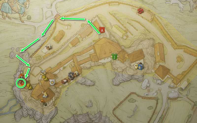 3명의 사람들에서 얻은 단서들을 종합하여 추론하면, 니크바르트 경이 훈련장 주변, 성 외곽에 있는 변소에 책을 떨어뜨렸을 가능성이 있습니다.