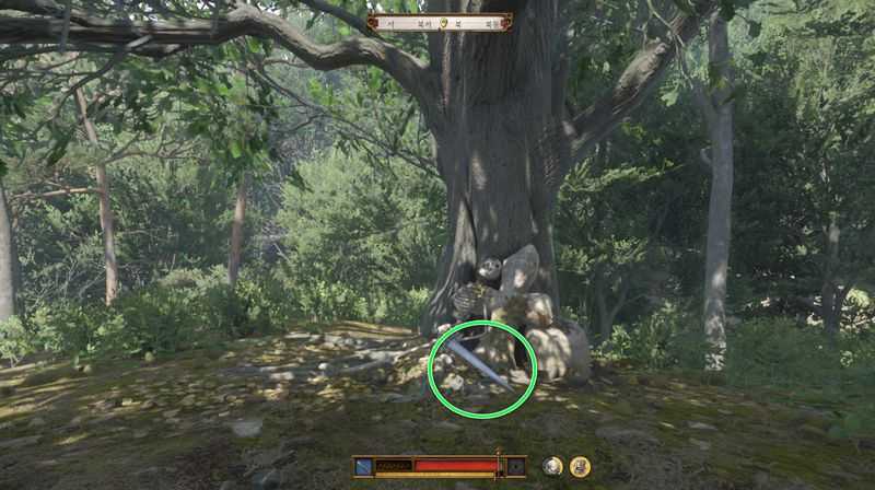 이곳의 커다란 나무 앞에 있는 유골에서 ‘기사의 검‘을 획득할 수 있습니다.