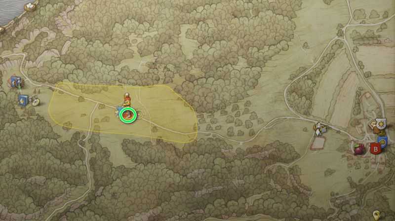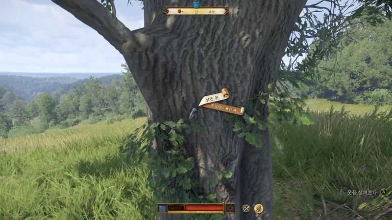 노란색 수색 범위 중앙의 아이콘이 있는 곳으로 가면 나무에 ‘낡은 못‘이 박혀 있을 것입니다.