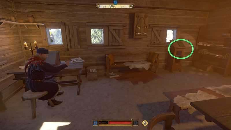 행정관 드로즈트가 있던 방 우측 안쪽 창문 아래 있는 녹색 책과 상호작용합니다.