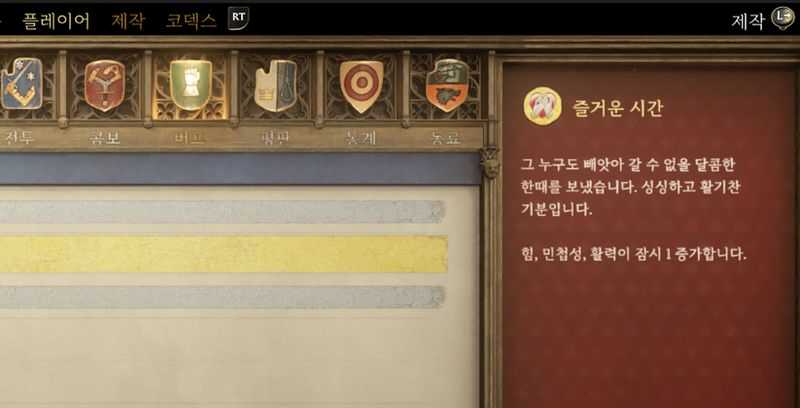 ‘즐거운 시간’ 버프는 일정시간 동안 힘, 민첩성, 활력이 1씩 증가합니다.