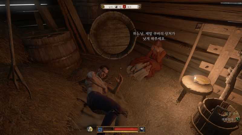 근처의 헛간으로 들어가면 일꾼 쿠바와 시녀 안나가 보입니다.