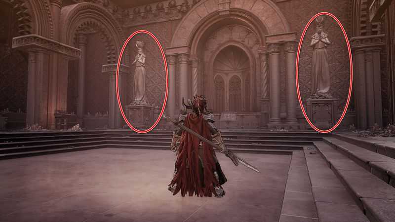 강적이 있던 방에 있는 여자 동상 x2를 조작하여, 두 동상이 서로 마주보게 하면 비밀통로가 나타납니다.
