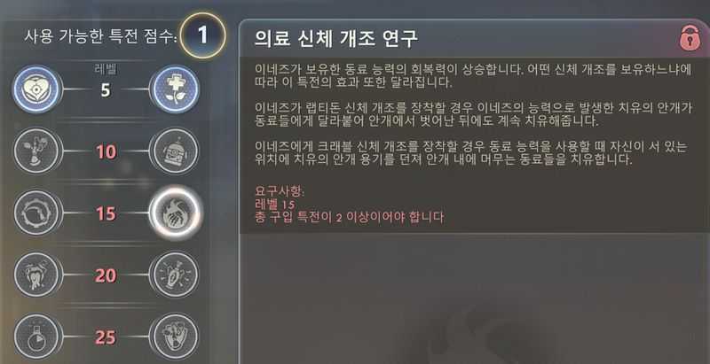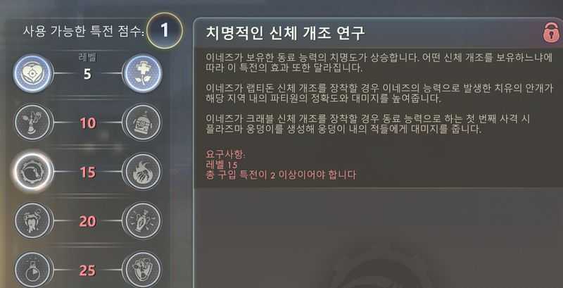 • 이네즈가 랩티돈 신체 개조를 장착한 경우 – 이네즈의 능력으로 발생한 치유의 안개가 해당 지역 내의 파티원의 정확도와 대미지 상승
