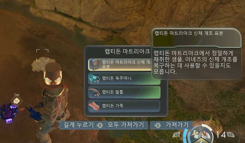 그후 보스 – 랩티돈 마트리아크의 사체에서 ‘랩티돈 마트리아크 신체 개조 표본‘을 획득합니다.