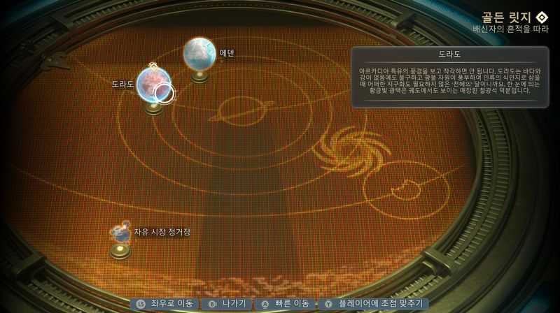 자유 시장 정거장을 먼저 탐험할 수도 있지만, 메인 퀘스트를 진행하려면 ‘도라도’를 선택하면 됩니다.