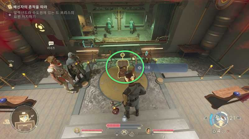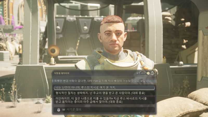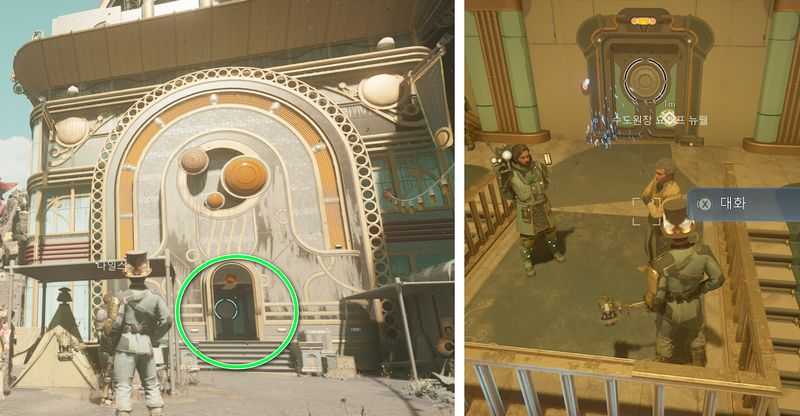 승강기 앞쪽에서 ‘조정관 메타디에르’와의 대화가 발생하며, 승천 교단 평판 +1