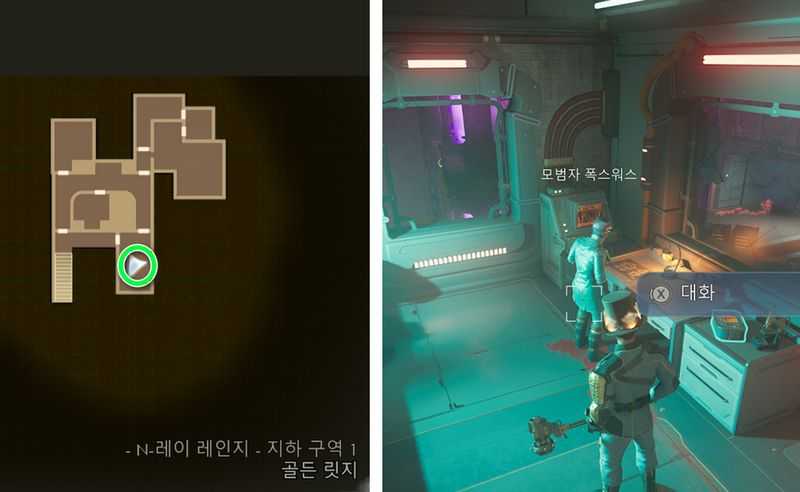 지하 구역 1 남쪽 방으로 이동하여 ‘모범자 폭스워스‘와 대화합니다.