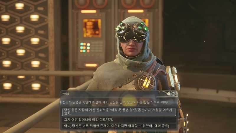 대화에서 [당신 같은 사람이 가진 신비로운 “아직 못 끝낸 일”을 돕는다니, 거절할 이유가 없지.] 를 선택하면, ‘마리솔’이 동료로 합류합니다.