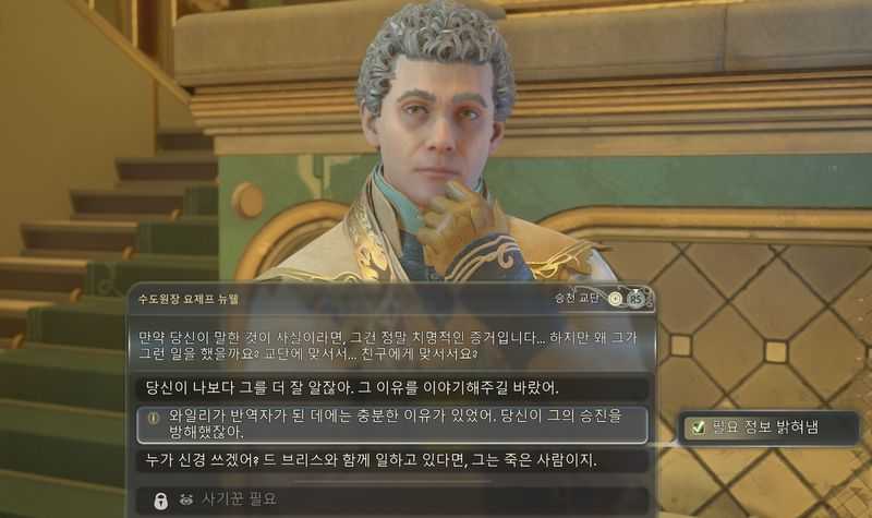 2. 당신의 드 브리스에 대한 믿음은 착각이야. 그녀는 그냥 당신을 이용하고 있을 뿐이야. (말솜씨 5 필요)