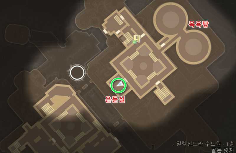 목욕탕에서 남서쪽 위 이미지 위치에 있는 ‘은둔실‘로 들어갑니다.