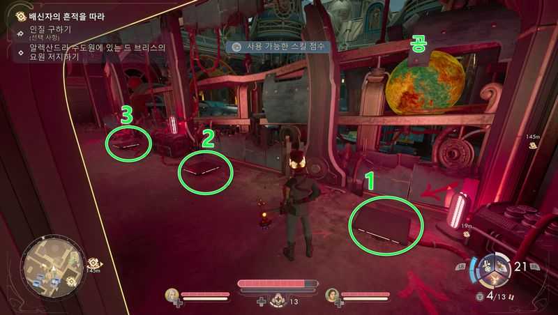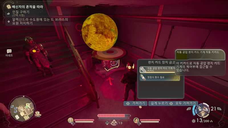 그러면 공이 있는 곳으로 가서 ‘펀치 카드 장치 금고‘ 안에서 ‘자동 공압 펀치 카드 기계 작동 키카드’, ‘정점의 향수 킬로’ 획득