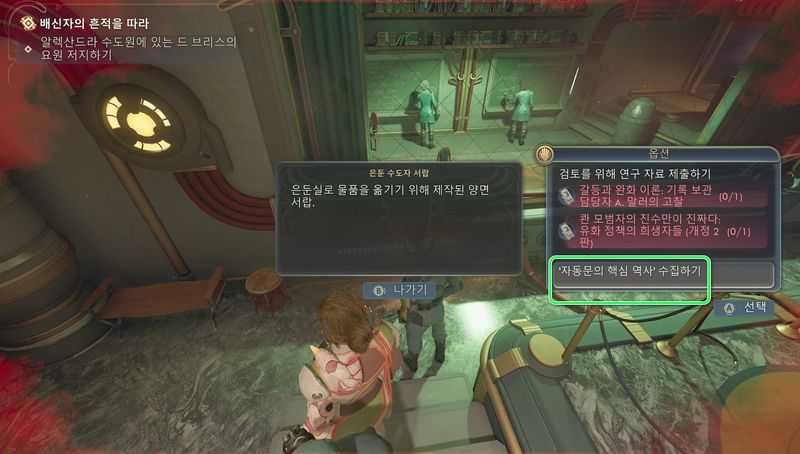 대화를 마친 후, 근처에 있는 은둔 수도자 서랍과 상호작용해 ‘자동문의 핵심 역사‘ 책을 수집합니다.