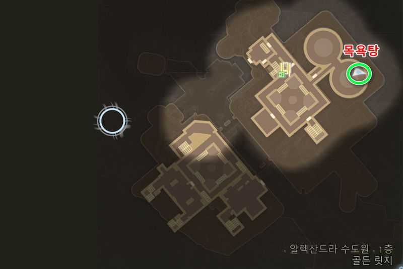 알렉산드라 수도원 1층 북동쪽 목욕탕으로 이동해, 위 이미지 위치로 갑니다.