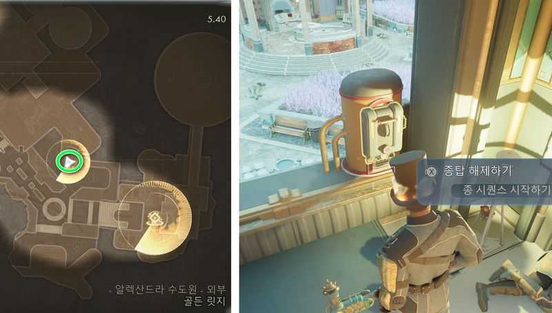 그후 관측소 남쪽 작업대 근처에 있는 ‘오라클 전시 케이스 접근 포디움‘과 상호작용해 수도원장의 만능 열쇠로 열면 유니크 무기 – 오라클 획득
