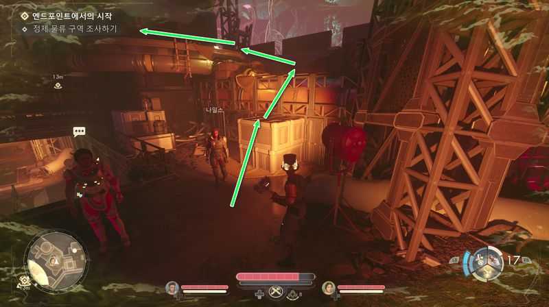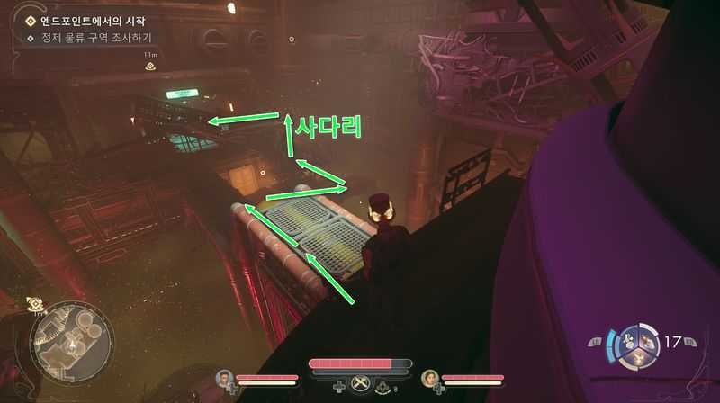 ‘견습생 알바’가 있는 곳에서 북쪽에 있는 ‘정제 물류 구역‘으로 이동하여 승강기를 타고 올라갑니다.