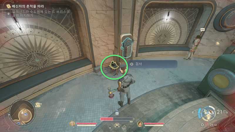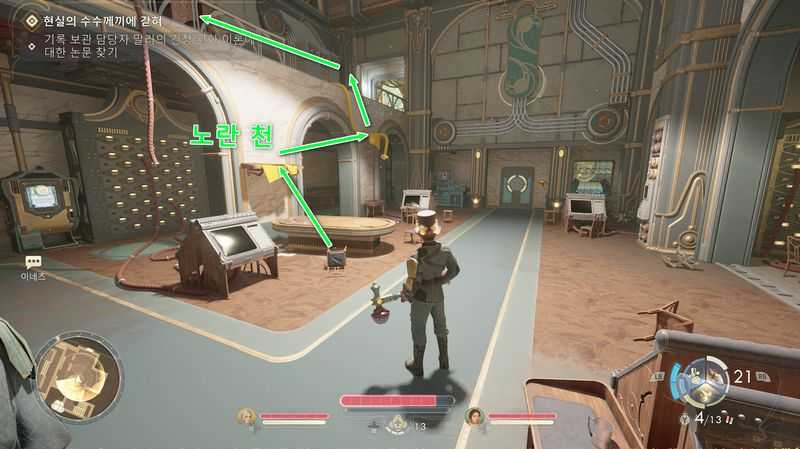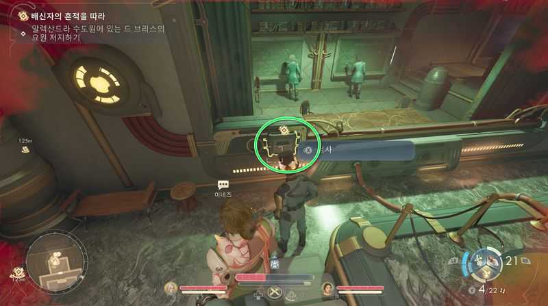 그후 중앙에 있는 장치와 상호작용하면 은둔 여사제 브룬 & 차오 와 대화가 발생하는데, [방해해서 미안하지만, 혹시 자동문에 관한 책을 빌릴 수 있을까?](목욕탕에서 불만 사항 쪽지를 읽어서 획득한 정보) 를 선택합니다.