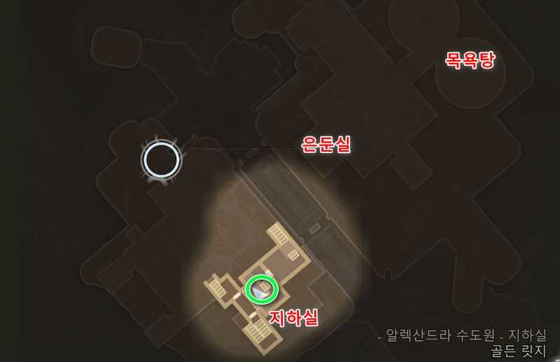 알렉산드라 수도원 1층 북동쪽에 있는 위 이미지 위치(목욕탕)로 갑니다.