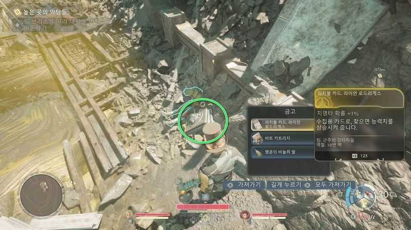 그러면 지라늄 가스구름 근처에 기업 병사의 시신이 보이고, 그 옆에 있는 금고를 열쇠로 열면 피치볼 카드: 라이언 로드리게스 (치명타확률+1%)획득
