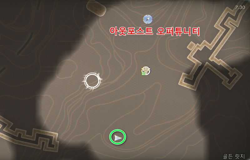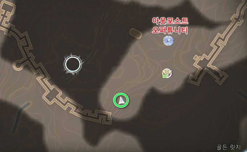그후 아웃포스트 오퍼튜니티 빠른이동 지점에서 남쪽에 있는 위 이미지 위치로 갑니다.