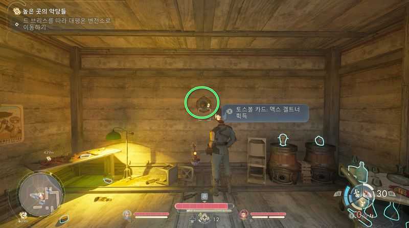 지하실 우측 벽을 보면 다트판에 꽂힌 토스볼 카드 : 맥스 겔트너(치명타 확률 +1%) 획득