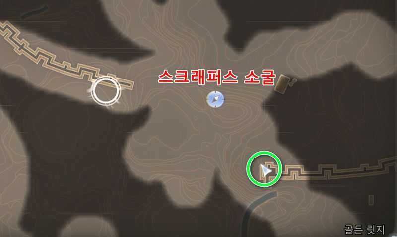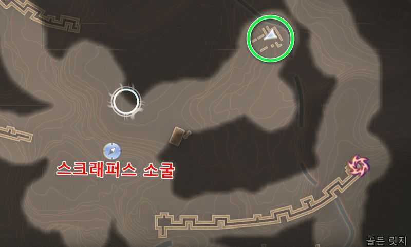 ‘골든 릿지’ 중앙에 있는 ‘스크래퍼스 소굴‘빠른이동 지점에서 남동쪽에 있는 위 이미지 위치로 갑니다.