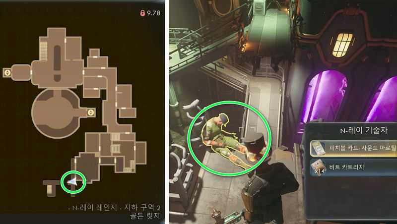 N-레이 레인지 – 지하 구역 2의 남쪽 끝으로 가면, 끊어진 다리 끝에 있는 N-레이 기술자의 시신에서 피치볼 카드: 사운드 마르틸릭(대미지+1%) 획득