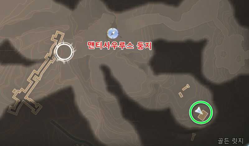 골든 릿지 북동쪽에 있는 ‘맨티사우루스 둥지‘ 빠른이동 지점에서 남동쪽에 있는 위 이미지 위치로 갑니다.