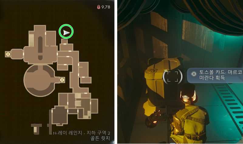 N-레이 레인지 – 지하 구역 2에서, 북쪽 끝에 있는 환기구로 들어가면, 환기구 중간쯤에 있는 상자 위에서 토스볼 카드: 마르코 미란다 (최대 체력+5)획득