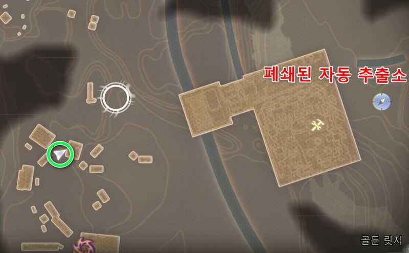 폐쇄된 자동 추출소에서 남서쪽으로 내려가 위 이미지 위치로 갑니다.