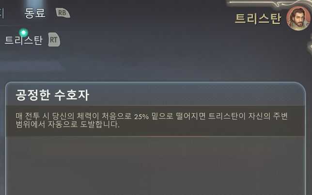 만약 ‘버질’을 살려준 경우 ‘트리스탄’은 추가 특전 ‘공정한 수호자‘를 획득하게 됩니다.