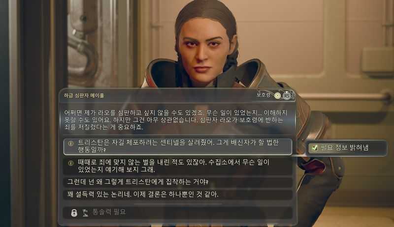 또한 인코그니트호로 돌아가서도 말솜씨로 ‘트리스탄’을 설득해야 파티 이탈을 막을 수 있습니다.