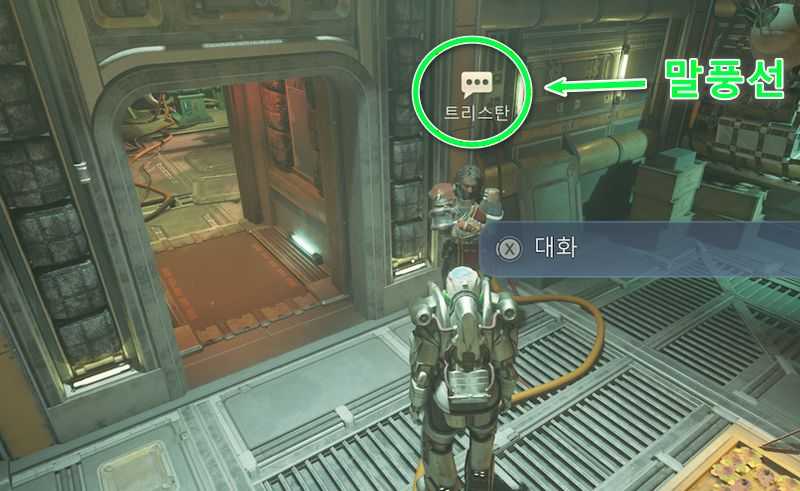 그러면 ‘트리스탄’이 조종석 입구 옆에 서게 되며 머리 위에 흰색 말풍선이 뜰 것입니다.