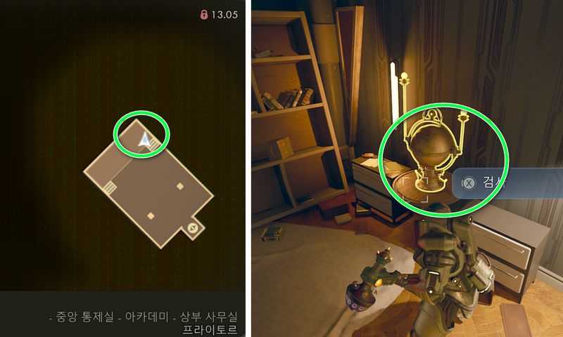상부 사무실 북쪽에 있는 ‘지구본'(약탈된 교단의 구체)과 상호작용하여, 스위치를 누릅니다.