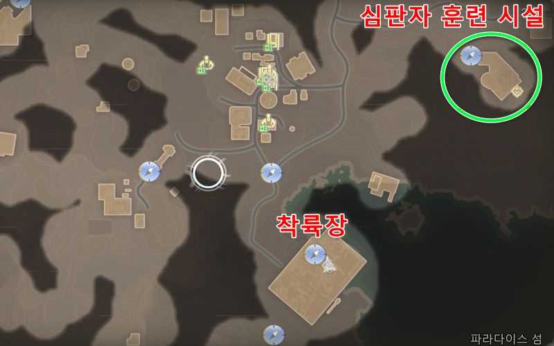 ‘트리스탄’을 파티에 반드시 참가시킨 후, 에덴(파라다이스 섬)으로 이동하여 ‘심판자 훈련 시설‘로 이동합니다.