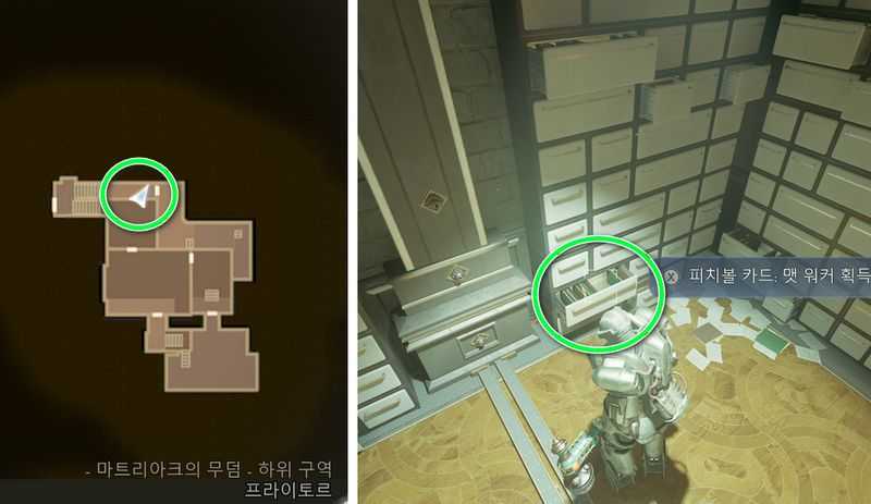 안쪽에 있는 흰색 서랍 안에서 피치볼 카드: 맷 워커 (도구 에너지 미터 최대+1) 획득