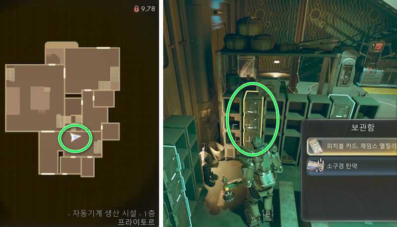 그후 문 좌측 ‘잠긴 금고‘를 쪽지에 쓰여진 조합으로 열면 피치볼 카드: 크리스 파커 (치명타 확률+1%) 획득