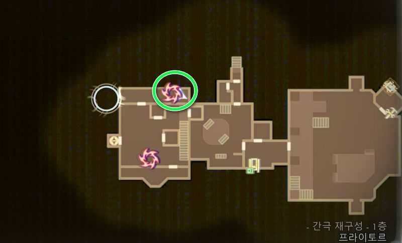 간극 재구성 센터 1층 북서쪽에 있는 ‘균열 이상‘이 있는 방으로 갑니다.