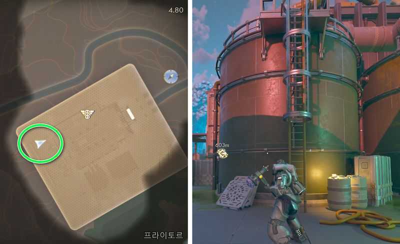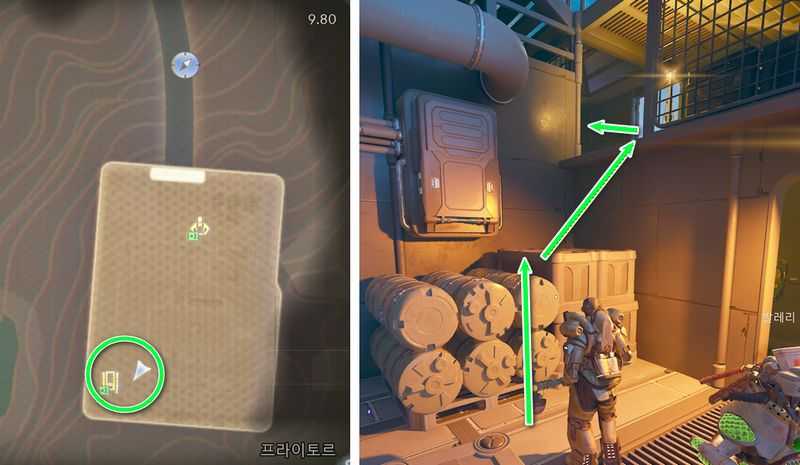 ‘접지 기지’ 남서쪽으로 간 후, 상자를 밟고 위쪽으로 올라갑니다.