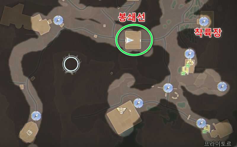 프라이토르 북서쪽에 있는 ‘중앙 통제실’ 빠른 이동 지점에서 약간 남쪽에 있는 위 이미지 위치로 갑니다.