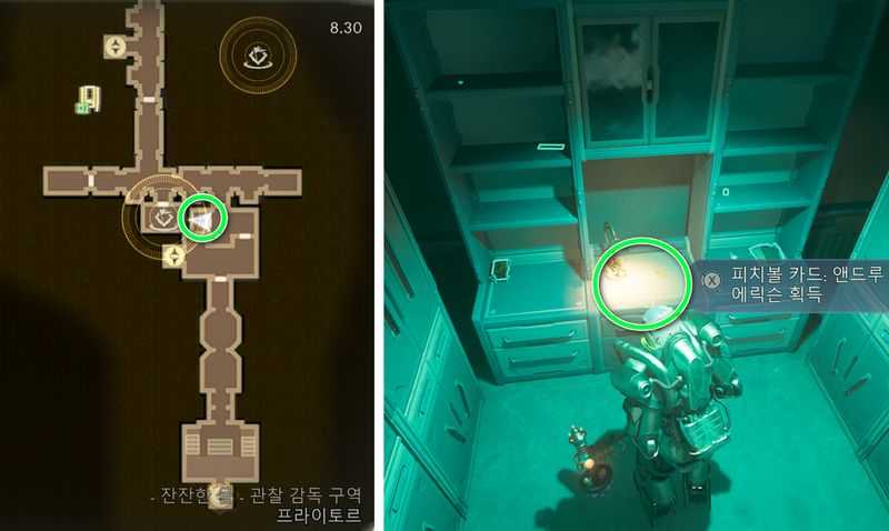 그후 위 이미지 위치로 가면 수납장 위에서 피치볼 카드: 앤드루 에릭슨 (도구 에너지 미터 최대+1) 획득