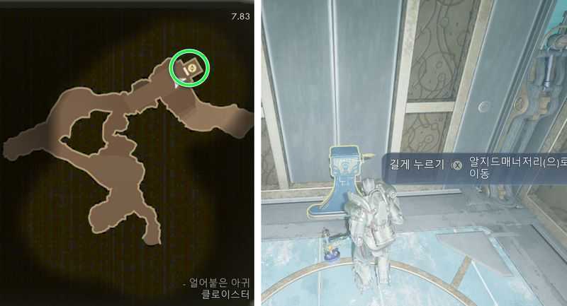 얼어붙은 아귀 북동쪽에 있는 엘리베이터 앞으로 간 후, 이네즈가 엘리베이터를 작동시킬때까지 잠시 기다립니다.