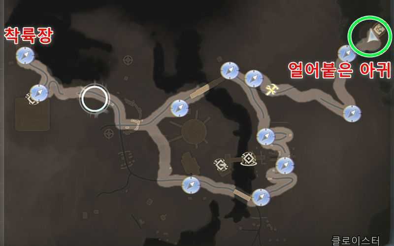 클로이스터 북동쪽에 있는 동굴인 ‘얼어붙은 아귀‘로 이동합니다.