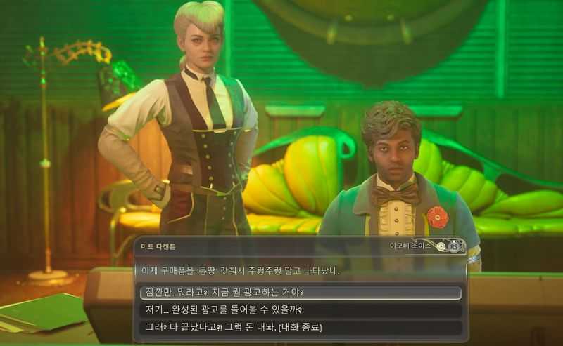 보상을 극대화하려면, 대화 마지막에 아래 두가지 선택 중에 하나를 하는 것이 좋습니다.